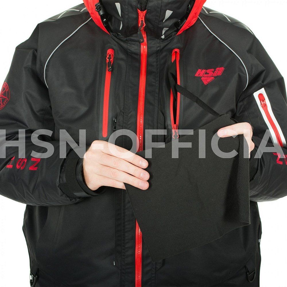 - внутри куртки три кармана с датчиком внутренней температуры: 2 кармана с молниями и объемный карман из сетки;