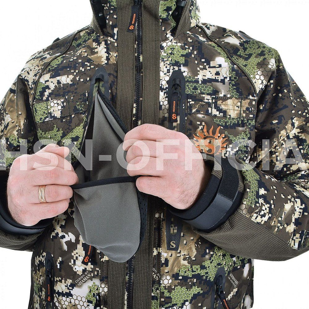 - высокий ветрозащитный воротник усиленный неопреном с регулировкой;