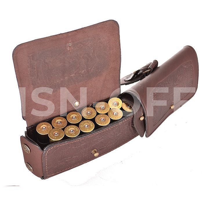 Позволяют загрузить патроны снаряженные в гильзы длиной от 70мм. до 89мм. Оснащены клапанами для защиты патронов от не погоды. В производстве используется итальянская фурнитура, которая практически не дает бликов. Раскрой производится на специальном оборудовании, что гарантирует высокое качество изделий. Изделие украшено миниатюрами охотничей тематики, нанесенным методом горячего тиснения.
