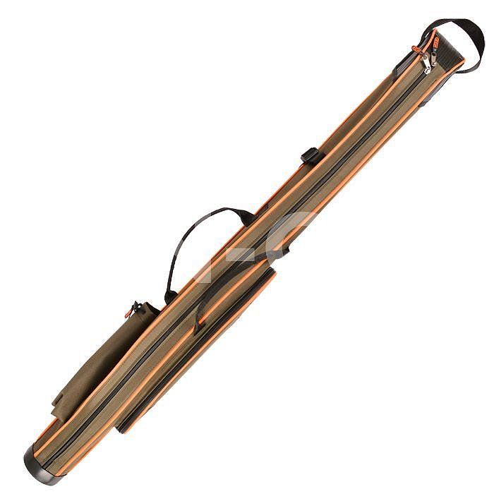 С наружной части чехла используется износостойкая и водоустойчивая ткань, которая легко очищается от грязи. Внутри и по бокам обклеена ППУ 2 мм. Стенки сбоку и перегородка покрыты тканью наполнителем ППЭ для защиты от трения и внешних повреждений. В производстве применяют итальянскую фурнитуру, почти не звенящую и не бликующую, а раскрой изделия выполняется на специальном для этого оборудовании, что обеспечивает отличное качество. Для более удобного переноса в конструкции тубуса предусмотрен ремень на плечо и ручка. Есть карманы, а также карманы-секции для использования стойки или подставки. В тубусе помещается от двух до пяти спиннингов. мягкие чехлы для катушек( 2 шт.) идут в комплекте.